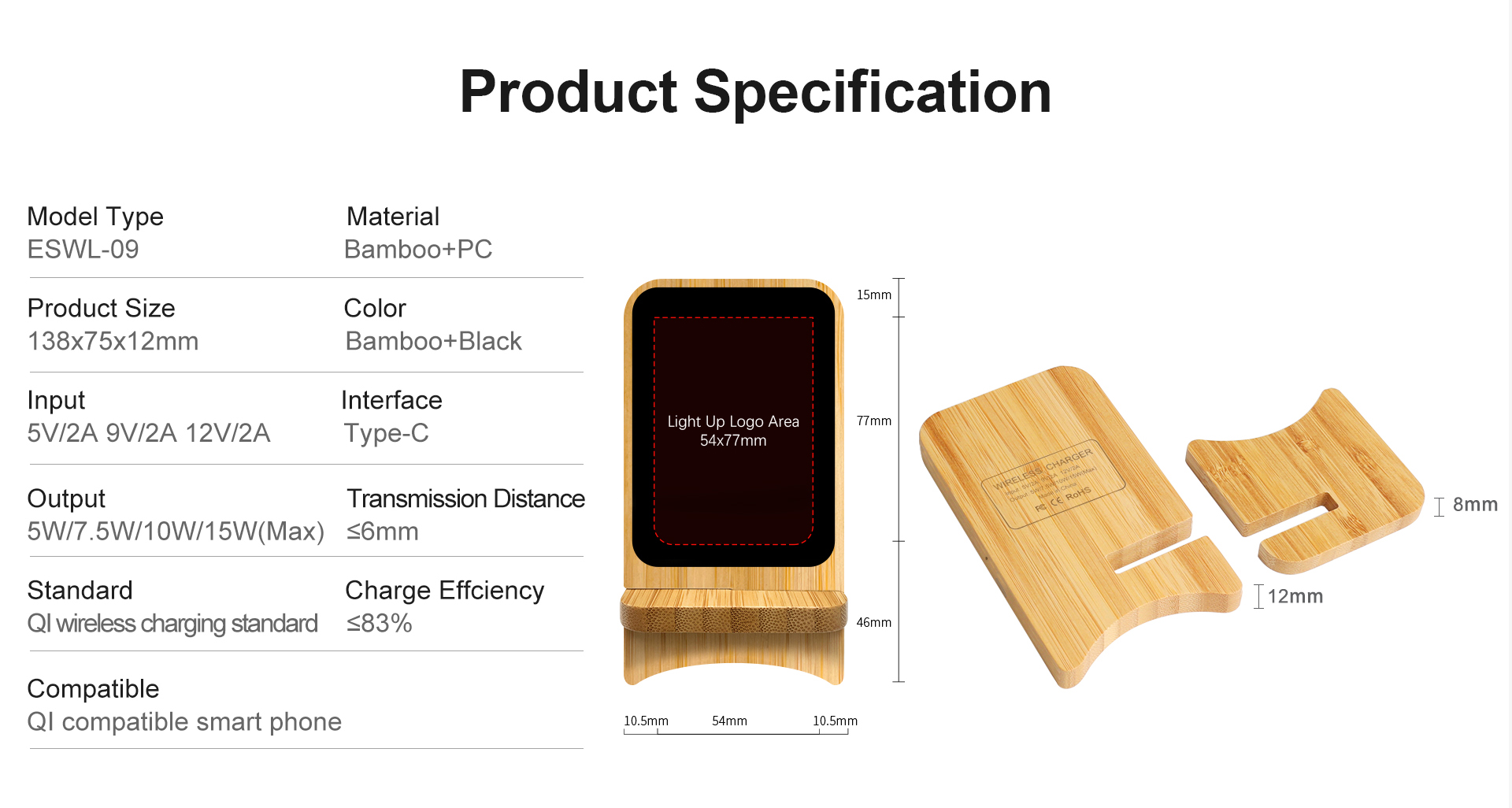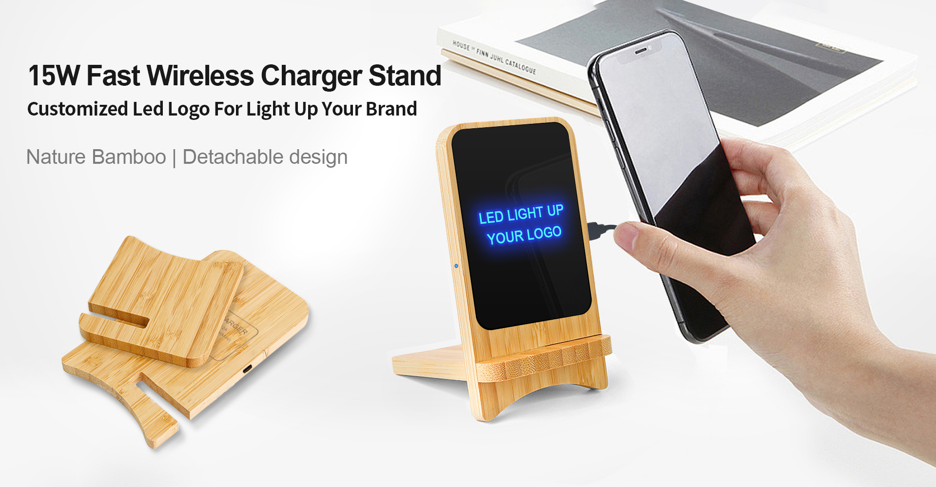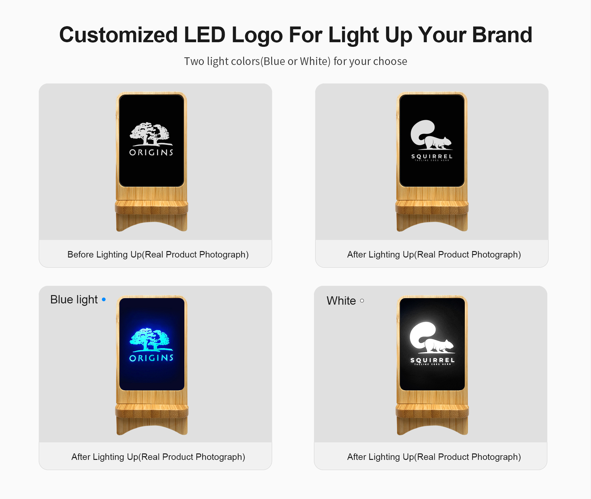 15W Bamboo Fast Wireless Charger (Light up Your Logo)